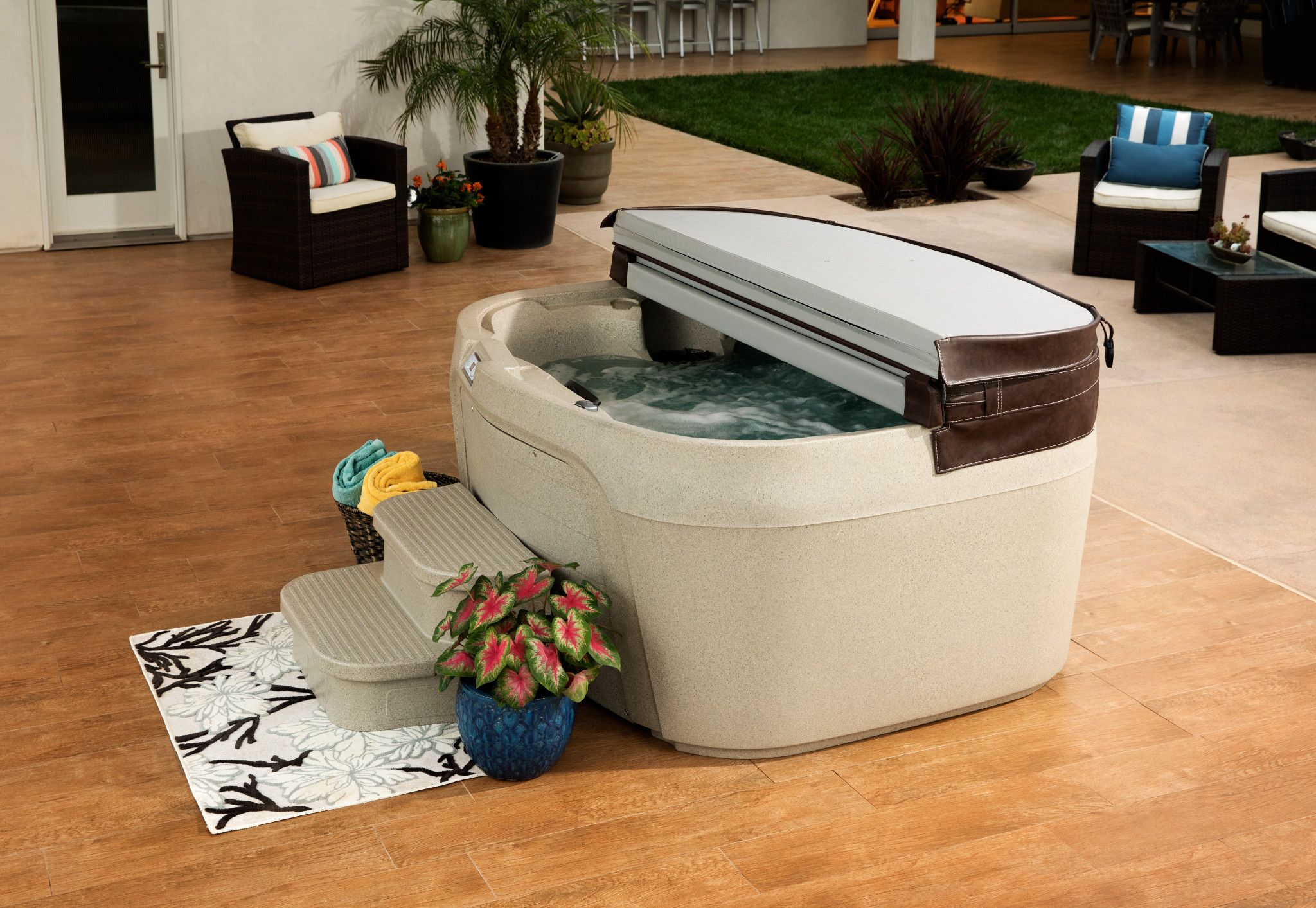 Crafted with a unibody, rotationally molded shell, every Fantasy Spa® is lightweight, weather-resistant, and built to last. This smart, durable construction allows you to move or reposition your spa with ease while maintaining lasting strength and insulation. Backed by Watkins Wellness—one of the world’s most trusted spa manufacturers—Fantasy Spas deliver reliable performance, low maintenance, and exceptional value. It’s luxury made simple, designed for real life and built to bring comfort home.
