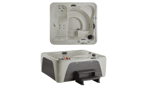 The Fantasy Spas Entice® Premier seats five adults and features an open layout with a built-in lounge and deep bucket seating for full-body comfort. Powerful jets deliver soothing hydrotherapy to the neck, shoulders, back, and legs, while a waterfall feature and multi-color LED lighting create a relaxing, spa-like ambiance. With upgraded synthetic wood cabinetry, contoured head pillows, and Plug-N-Play convenience, the Entice® Premier offers easy installation, energy efficiency, and lasting performance—all wrapped in a refined, modern design made for everyday enjoyment.